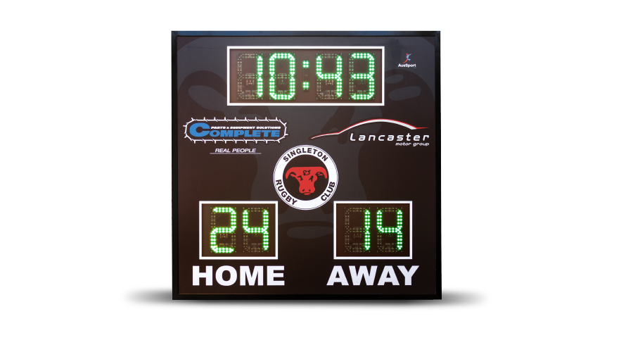 This scoreboard is suitable for Rugby League, Rugby Union, Hockey and Soccer.